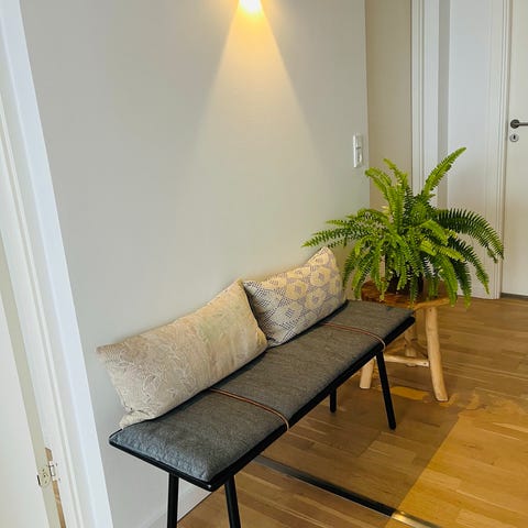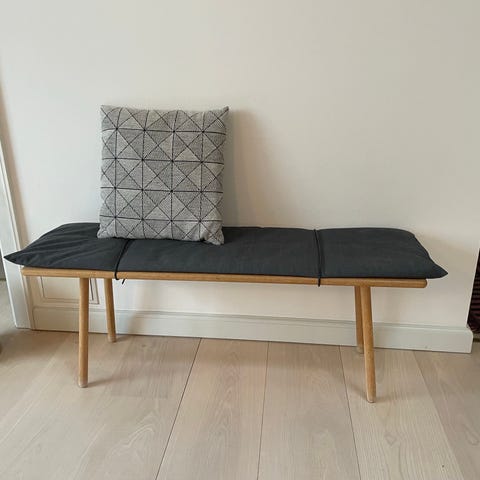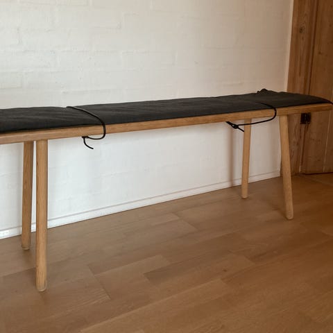 Bænken er fra Brdr. Sørensen møbler, men har aldrig været brugt og fremstår derfor som ny. Bænken har stået i en udstillingslejlighed.