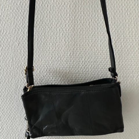 skulderen taske sort læder 22x18 pris 220 kr taske kan godt sendes for free fragt