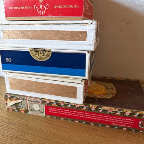 Andre samleobjekter, Tre træ cigaræsker i pæn stand