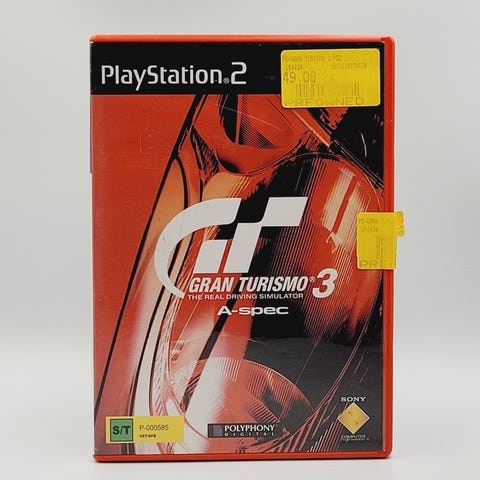 Gran Turismo 3, PS2, racing, Gran Turismo 3. Æsken er ikke i perfekt stand, men det er spillet.