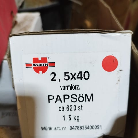 papsøm, en kasse papsøm 3,0*25 9000stk sælges for 1520 kr