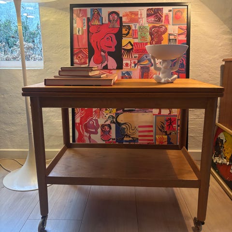 Andre borde, Ukendt, egetræ, b: 42 l: 67 h: 65, Smukt lille rullebord i egetræ med små kakler i okseblods rød med sorte pletter.