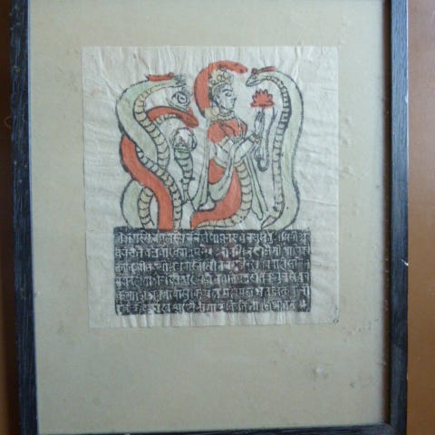 Gnidebillede på rispapir fra Angkor Wat i Cambodia. Indrammet med rød thaisilke