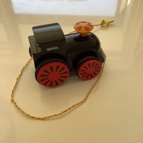 Tog til at trække, Fint ældre BRIO tog i træ med gummiringe på hjulene, Måler ca 12x12x9cm . Lidt brugsspor hovedsagelig på tag og hjul men generelt pæn stand og kører fint.