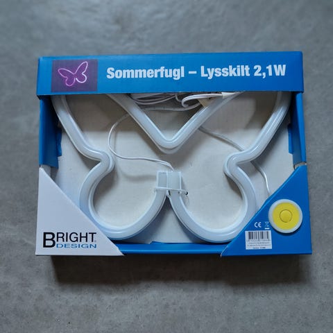 Lampe, Sommerfugl, i rød og blå, kan laves så den enten er rød eller blå. Pærer medfølger, det er stor fatning.