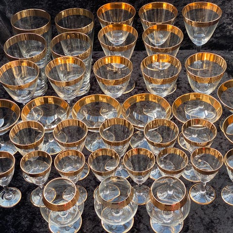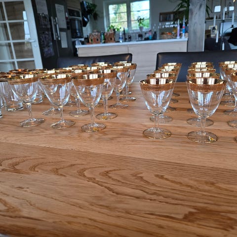 Glas, 30 flotte blandede glas m 1 cm guldkant. , Tosca