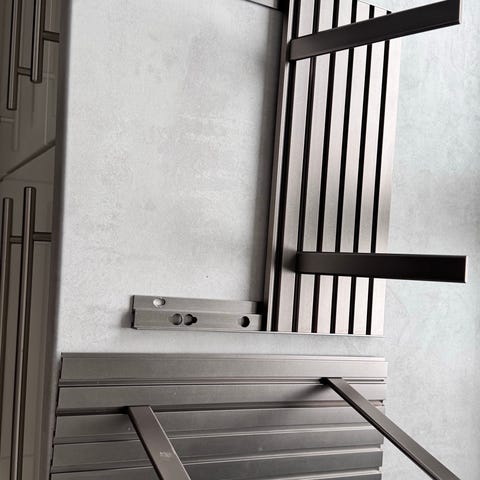 Designet er modulært, så du kan tilpasse det til dine behov og din indretning. Systemet er fremstillet i flykvalitetsaluminium og fås i 12 forskellige farver. Dette er et nyt og ubrugt sæt.