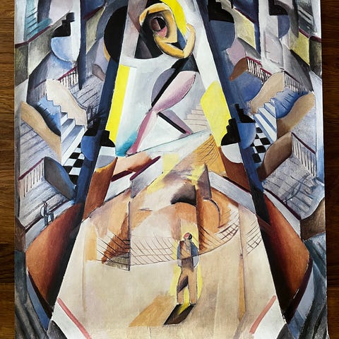 Jais Nielsen (1885-1961) var del af det sidste hold kunstnere, der blev uddannet ved Kunstnernes Frie Studieskole under Kristian Zahrtmann (1843-1917). Sammen med flere fra studiet dannede Nielsen kunstnergruppen De tretten, en Salon des Refusés, hvor blandt andet Olaf Rude (1886-1957), Storm P (Robert Storm Petersen 1882-1949), Aksel Jørgensen (1883-1957), William Scharff (1886-1959) og Edvard Weie (1879-1943) udstillede. Inspirationen til Nielsens kubistiske værk kan vi spore til den franske kubisme og den italienske futurisme, der begge opererer med ønsket om at indkapsle tid og bevægelse på maleriets flade.