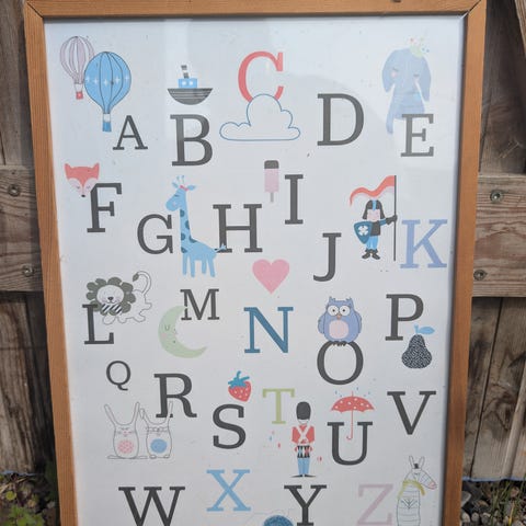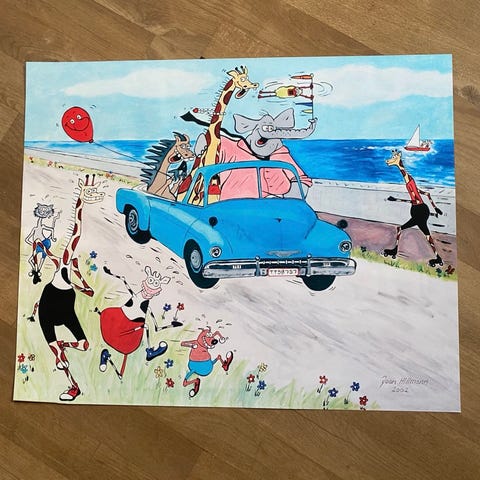 Plakat til børn, En sød plakat med mus og planter/ blomster, græs, æbletræ og hegn, i fin stand. Nogen har fortalt mig, at det er et Pixi billede, men dette usikkert. Mål 40x30.