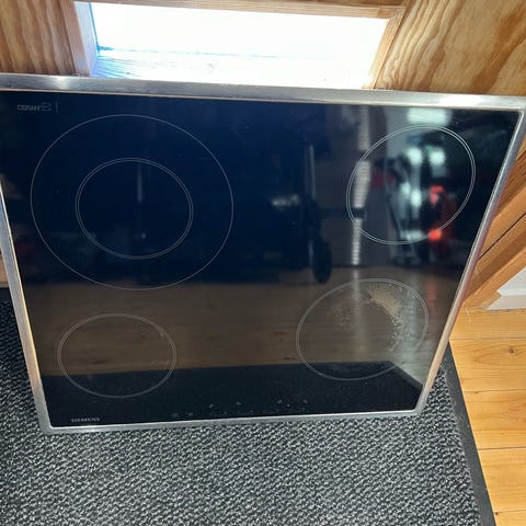 Glaskeramisk kogeplade 57x50 cm med smal sort stålkant som virker fint til