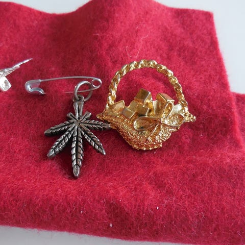 Andet smykke, andet materiale, Forskelligt pynt - slipsenål - broche og andet. - ingen stempel - “ gult. “ og blankt. - kam sendes for 47 kr