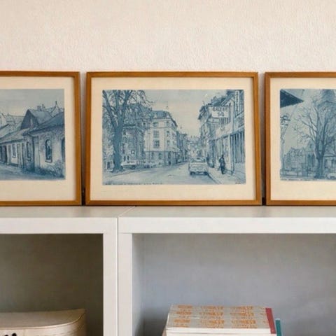 Tryk i ramme og med et gulligt glas foran for beskyttelse mod lyset, som selvfølgelig kan skiftes ud.