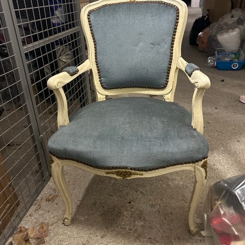 Lænestol, Antik lænestol i fransk Louis XVI stil, tror det er valnød.