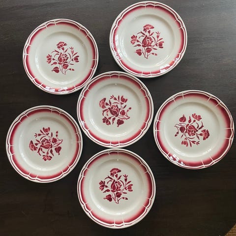 Fajance, tallerkener, 2 tallerkener med navn og søde motiver.