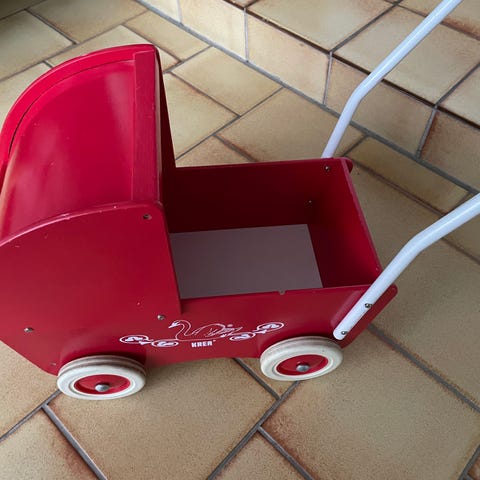 Meget fin dukkevogn, Rød dukkevogn, Krea Klassisk rød dukkevogn i træ - meget fin stand , kun brugt indendørs. Byd evt.