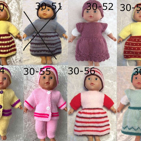 Nyt hjemmestrikket tøj til dukke på ca 30-35cm fx baby Rose.