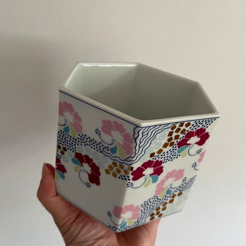 Porcelæn, Urtepotteskjuler , Bing og Grøndahl, Flot urtepotteskjuler Bing og Grøndahl lyserød Prisme design Anne-Grete Halling Koch 10cm nr 1827/5468 fast pris 250kr