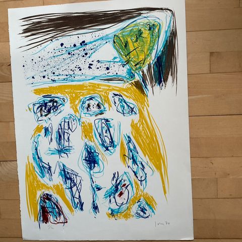 Litografier, Asger Jorn, Asger Jorn Farvelitografier Har aldrig været indrammet perfekt stand Original mappe og lp pladen alt som nyt et samarbejde med Haldor. La Ness Dette er nr 46 ud af 195 eksemplarer signeret af Haldor. Og Asger Jorn sælges enkeltvis pris 7.500 kr 28.000kr for alle i en komplet mappe Fast pris