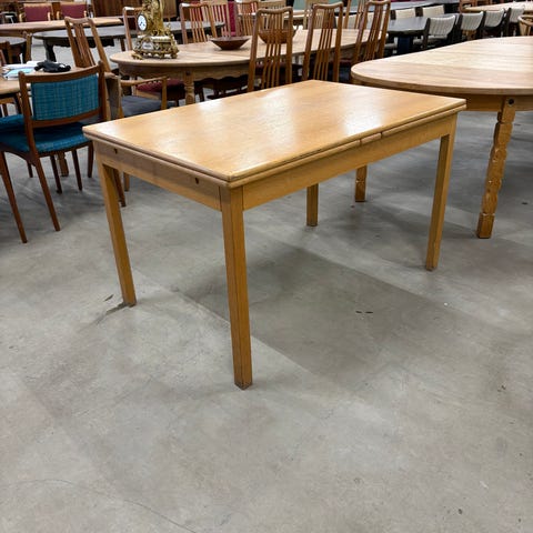 Spisebord, Egetræ, Egetræ, b: 100 l: 150, 1 stk Egetræsbord med 2 plader Længde 150 cm Højde 75 cm Bredde 100 cm Totallængde med 2 plader er 250 cm