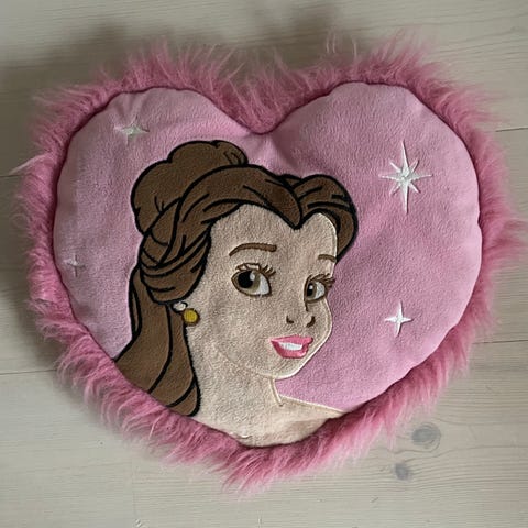 mrk. Disney :Måler 23x17 cm., Nyvasket : Ældre Disney Legetøj Plys Bamsepude Bamse Pude Stand : Fin :Æseldyret Sidder fast på Rød Hjerte Pude Pyntepude Stand : Fin