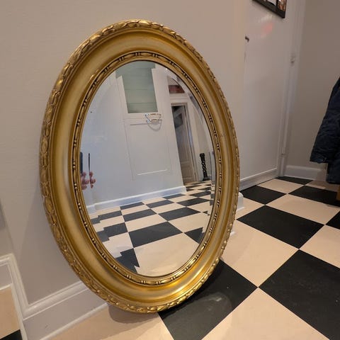 Spejlglasset er intakt med med pletter som gamle spejle med bly er.