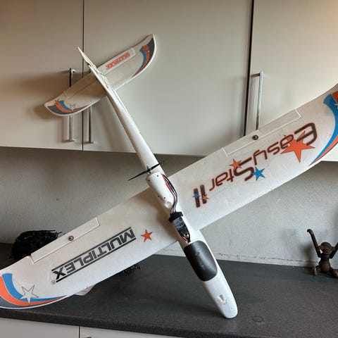 Modellen er tom for elektronik, men der er ledninger i krop og vinge. Flyet har ikke fløjet særligt meget og er rigtig pæn. Dog er der 2 meget små kosmetiske trykmærker på bagkroppen ( se foto).