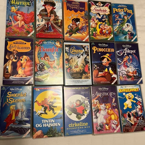 3 styk børn Disney film vhs dur som de skal vi sælge dem forde vi ikke har vhs av spiller mer og det er 3 gode Disney tegnefilm for børn 300 kr for de 3 flim