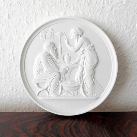 Relief, Bisquit, Meget flot bisquit relief/platte fra B&G. Stemplet: "B&G Eneret". Motiv: "Juleglæde i himlen, af Bertel Thorvaldsen ca. 1880" Diameter ca. 32 cm. Kan afhentes i 7470 Karup, sendes med DAO for købers regning, eller mod et mindre beløb leveres i mit nærområde.