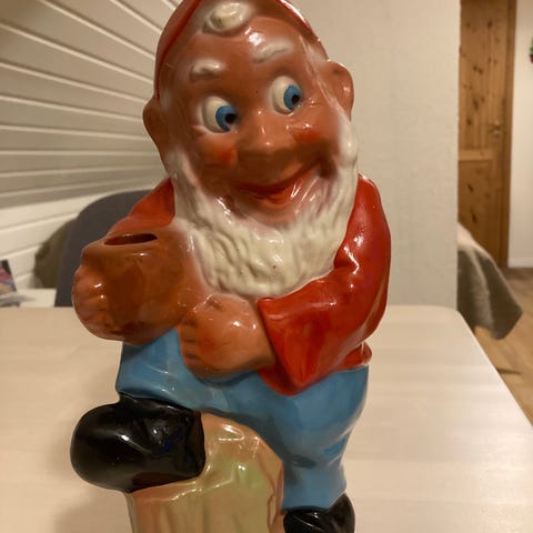Keramik nisse, Skønneste, og meget gamle West Germany nisse i rødler. Han står med en stor kurv, hvor man kan lave en lille dekoration i. Han er i perfekt stand.