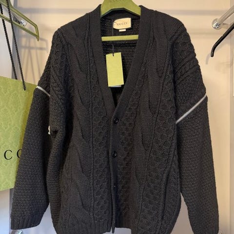 Cardigan, Gucci , str. L, Grå, blå, Ubrugt, Lækker ubrugt strik i grå og blå til mænd fra Gucci.