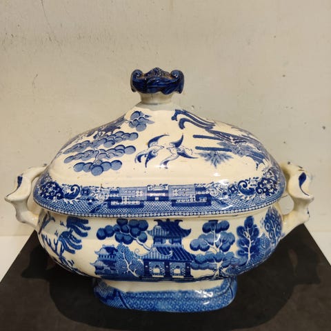 Terrin, Porcelæn, Blå blomst terrin sælges.