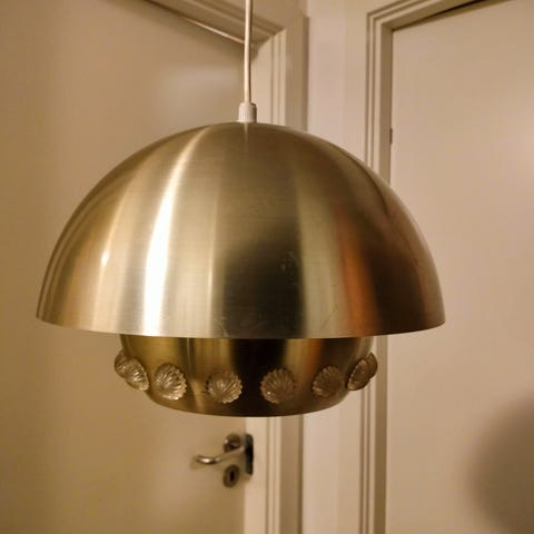 Loft-Lampe Skærm - Retro. Det er en rigtig gammel loftlampe. Har et lille afslag foroven - men ikke gået helt i gennem, ses på foto nr. 8. Se alle fotos. Må afhentes i Viborg eller sendes forsikret med DAO + porto. Se gerne mine andre annoncer - mere kan købes med.