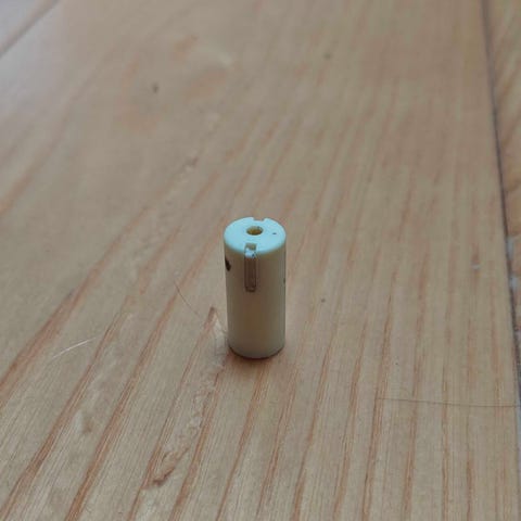 2 hvide plasticknapper med metaløje bagpå
