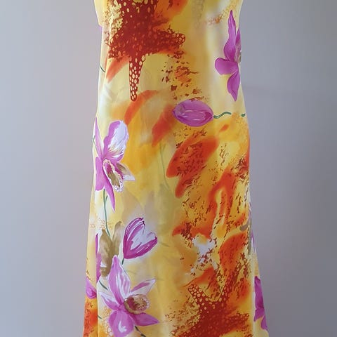 Blommefarvet festkjole eller gallakjole med vatteret brystfrontparti.