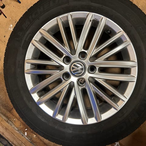 Alufælge, 16", Alutec, 195 / 60 / R16, krydsmål 5 x 112, ET 47, vinterdæk, Goodyear, 7mm mønster, fælge med dæk, Fine alufælge mærke Aluett - har siddet på en VW Touran