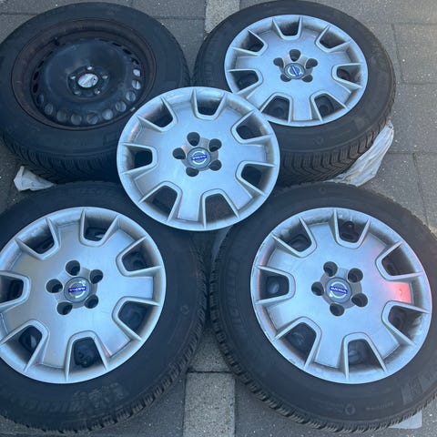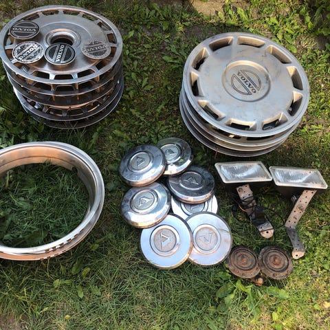 4 stk fine rustfri navkapsler med gummiring til 15" de luxe fælge til Volvo 142, 144, 145, 164 pris 500kr