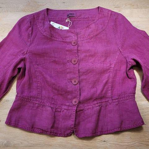 UNO Danmark nederdel str. 2 i 100% hør. NY MED MÆRKE. Meget flot og lækker mellemkraftig nederdel. Lyngfarvet med trykte prikker. 2 lommer og slids i bag. 13cm jersey for oven som ikke fylder når man har en tætsiddende bluse over. Elastik i taljen. Talje bredde 31 - 45cm. I overgangen mellem jersey og hør er bredden let elastisk 49 - 55cm. Bredde hofte 61ccm. Bredde nederst 63cm. Længde målt bagpå 92cm. Lille skade øverst i slidsen (se foto).