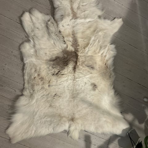 Okseskin til gulv, Målene er: på det bredeste sted forneden 234 cm.