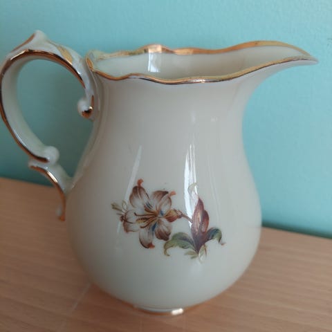 Porcelæn, Mælkekande/ flødekande, Smuk håndmalet japansk porcelæns kande / flødekande/ mælkekande med motiv af 2 kvindelige geishaer og en mand samt et kirsebærblomster træ og guld detaljer.