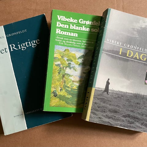 I dag, Vibeke Grønfeldt, genre: roman, Livet i den danske provins, som det umærkeligt og gradvist har ændret sig de sidste fyrre år, skildret gennem tredive sammenhængende, novelleagtige punktnedslag i perioden 1952-1996,