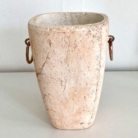 Gedigen tung kraftig (står godt/sikkert) blå/grøntonet multifunktionel vintage vase, potteskjuler, orkideskjuler, urtepotteskjuler. Praktisk anvendelig størrelse. Klassisk motiv af kønne ranker/rosenranker/ Erik Bering style.