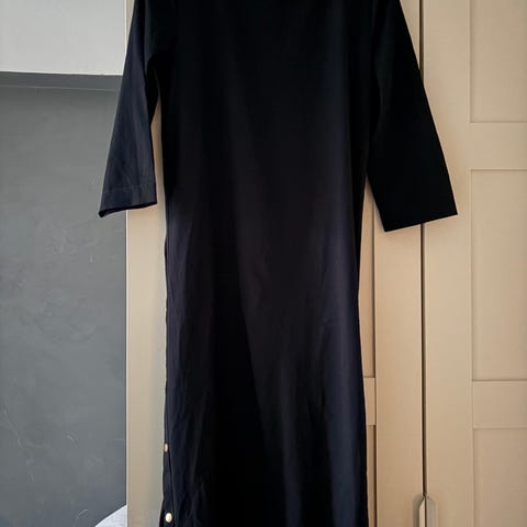 Six Ames, str. M, Mørkeblå, Næsten som ny, Mørkeblå kjole med broderet perler.