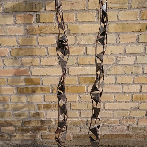Håndlavet veldrejet design kunstsmedearbejde fra oprindeligt antageligt Finland. Skifter farve efter lysindfald. Vintage skulpturer. Unika Design Suomi.