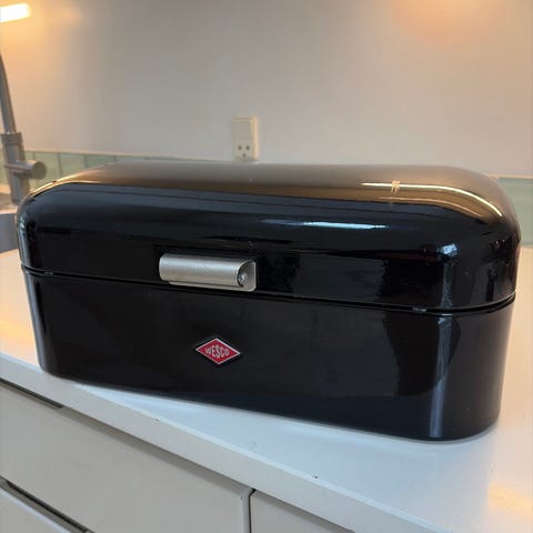 Wesco brødkassen i stål med rulle låg i den fineste røde retro farve.