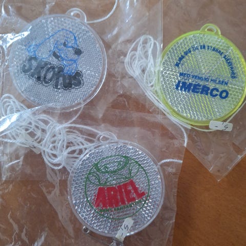 pakke med 2 reflekser fra “3M Scotchlite”; super praktisk for skoletaske, skolerygsæk, sportstaske etc. Kan sendes.