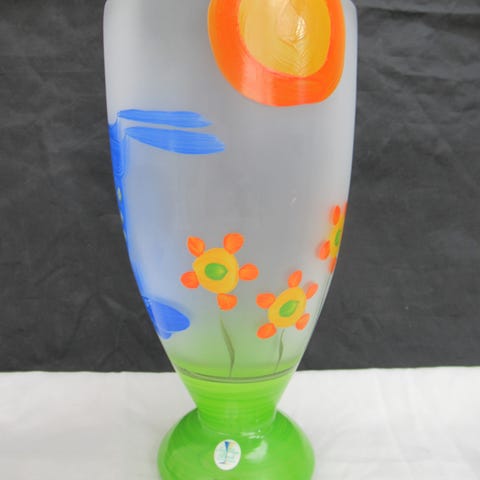 Vasen måler 18,5 cm i højden og 8,5 x 8,5 cm på siderne.