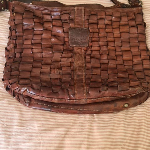 Skuldertaske, Campomaggi, læder, Lækker flettet lædertaske. Obs - der er lavet helt nyt foer.