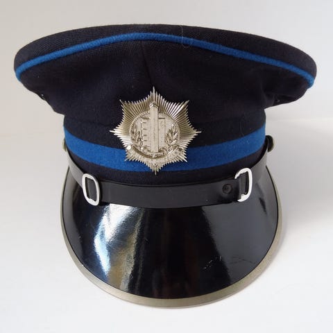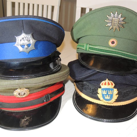 Uniform, Politi kasketter, Samling af 7 politi kasketter fra forskellige lande.