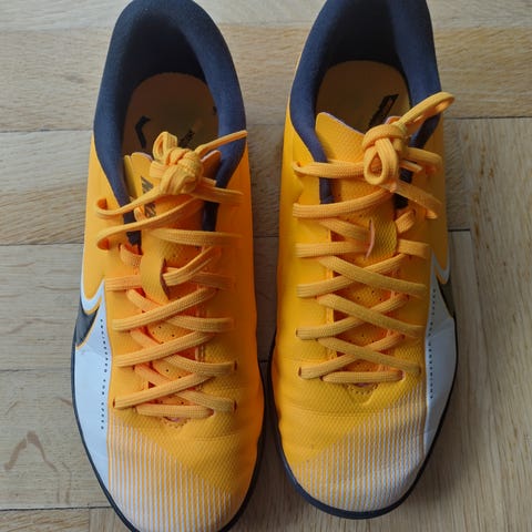 hvide badmintonsko fra Yones i str. 41 med røde snørebånd.