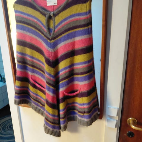 Flot strikket poncho i Merino uld fra Fuza. Hjemmelavet og håndstrikket af kvinder fra Nepal (fair-trade program).